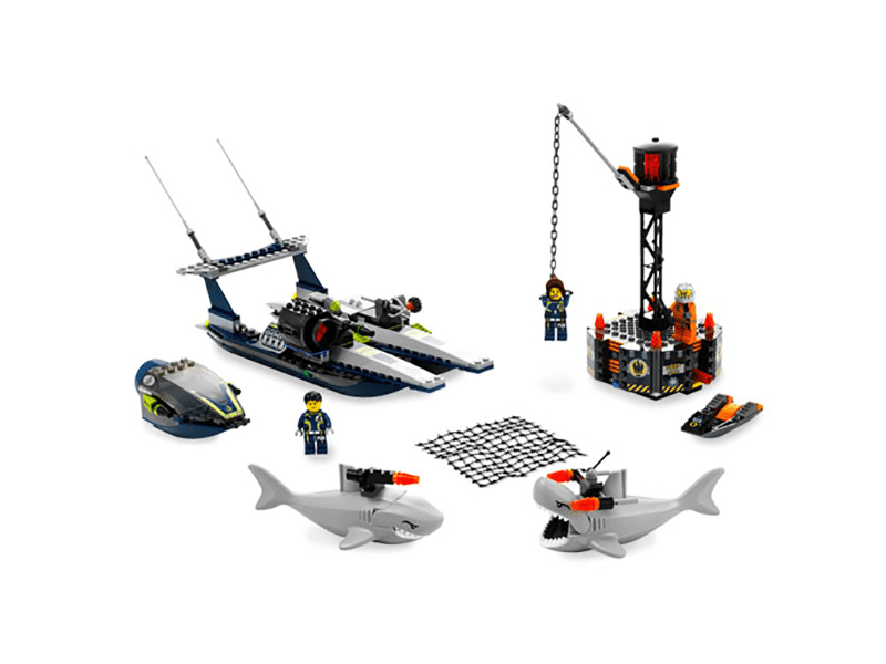 Beschrijving: Laatste nieuws: agent Trace is ontvoerd door de handlangers van Dr. Inferno en zal door hem aan de haaien worden gevoerd! Jouw taak: red agent Trace met de superspeedboot vol gadgets. Speciaal wapen: gebruik de kleine onderzeeër van de speedboot. Waarschuwing: Break Jaw heeft op afstand bestuurbare haaien.