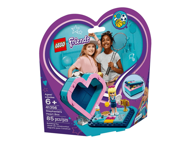 Beschrijving: LEGO Friends 41356 Stephanie’s hartvormige doos is een schattige draagdoos voor de sportieve LEGO Friends Stephanie en alle dingen die haar persoonlijkheid het beste weergeven. In de hartvormige doos zit een tennisracket en een bal, dus ze is klaar om haar sportieve vaardigheden overal te laten zien. Er zit ook een gouden beker in om te laten zien dat hard werk en toewijding worden beloond! Inclusief een Stephanie minipoppetje.