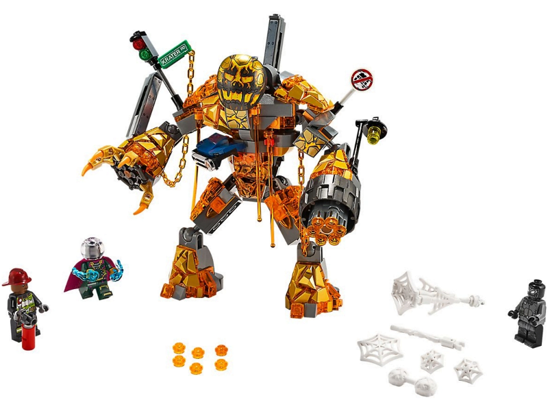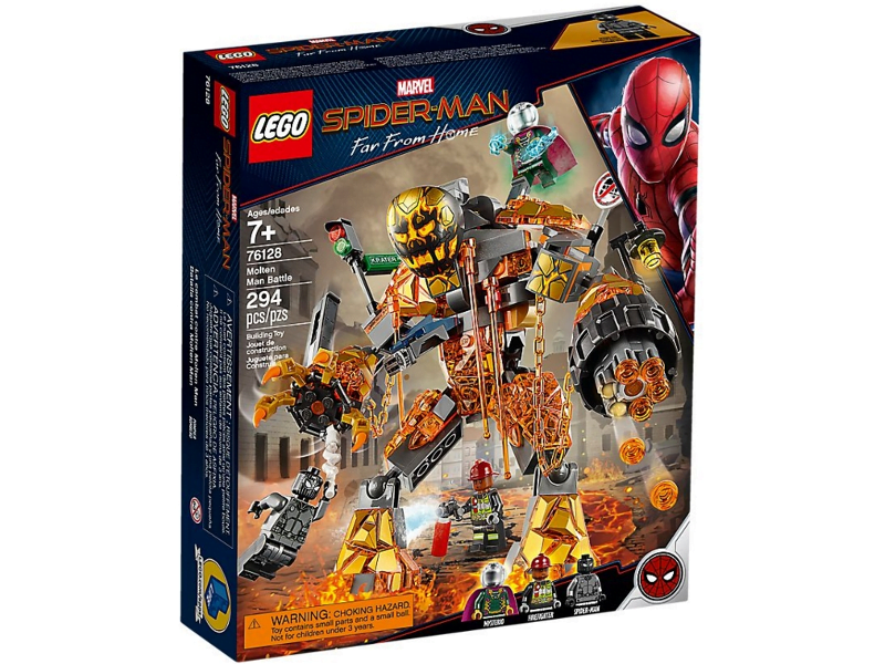 Beschrijving: Bouw een geweldig vuurmonster en speel een spannende LEGO Marvel Spider-Man 76128 Molten Man duel na. Deze bouwbare mechanische speelgoedfiguur van Molten Man heeft verstelbare gewrichten, een grijpklauw, 6-schots snelvuurgeschut, bouwbare ‘smeltende’ voorwerpen zoals de helft van een auto, straatlantaarn en een verkeerslicht aan zijn lichaam, gesmolten lava-elementen en bevestigingspunten voor minifiguren. Dit Marvel speelgoed is inclusief 3 minifiguren (Spider-Man, Mysterio en een brandweerman) met wapens en accessoires om spannende superheldenscènes uit de film Marvel’s Spider-Man: Far From Home na te spelen.
